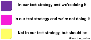 Estoy leyendo el libro de Katrina Clokie “A Practical Guide to Testing in DevOps”, y una de las tantas cosas que me vienen gustando del libro, son las distintas dinámicas que plantean para generar conversaciones sobre las tareas de desarrollo y calidad. En particular acá te resumo una dinámica llamada “test strategy retrospective” (retrospectiva de la estrategia de pruebas) en la que se analiza cómo se viene realizando el testing, buscando alinear al equipo y generar un plan de acción para mejorar las tareas de calidad.